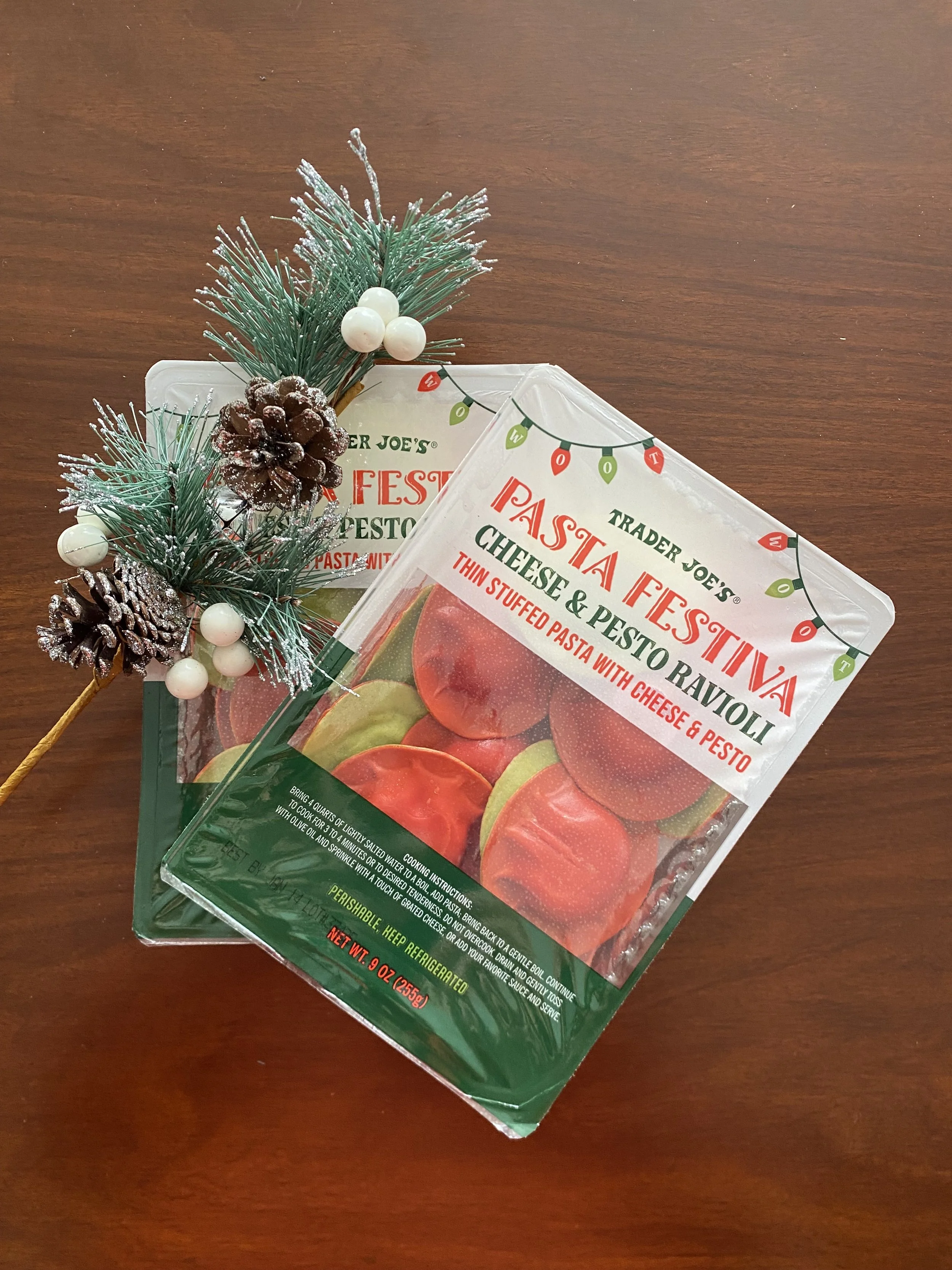 A new holiday item at Trader Joes this year, the Pasta Festiva includes delicious red and green ravioli, getting their festive colors from tomato and spinach power. These ravioli contain pesto and ricotta cheese cloaked in extremely thin pasta sheets, which gives the ravioli a pleasant texture. The richness of the pesto and the creaminess of the ricotta make for a delightful savory bite, and a flavorful yet light dish. They also prepare extremely easily over the stove making them a convenient holiday treat, and taste good with tomato-based sauces or just olive oil and Parmesan cheese on top. Overall, the Pasta Festiva are a delicious way to celebrate the holidays with savory flavors.
